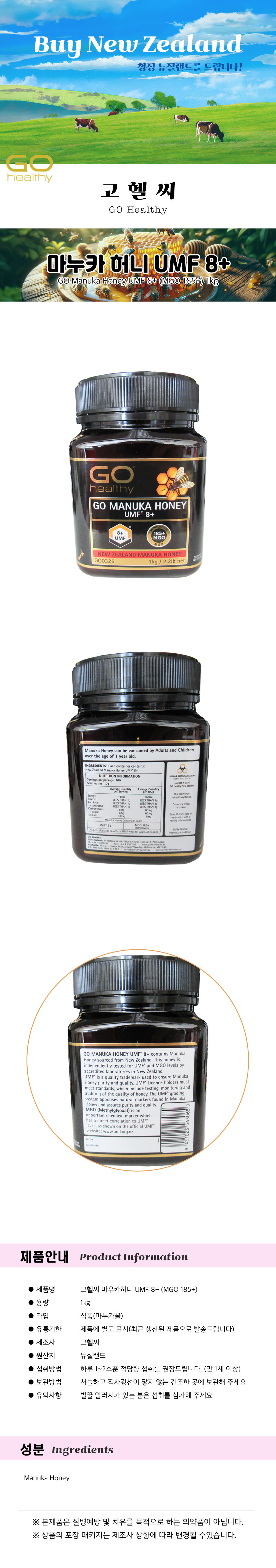 (´ÜÁ¾.251016)´ºÁú·£µå °íÇï¾¾ ¸¶´©Ä«Çã´Ï UMF 8+ (MGO 185+) 1kg