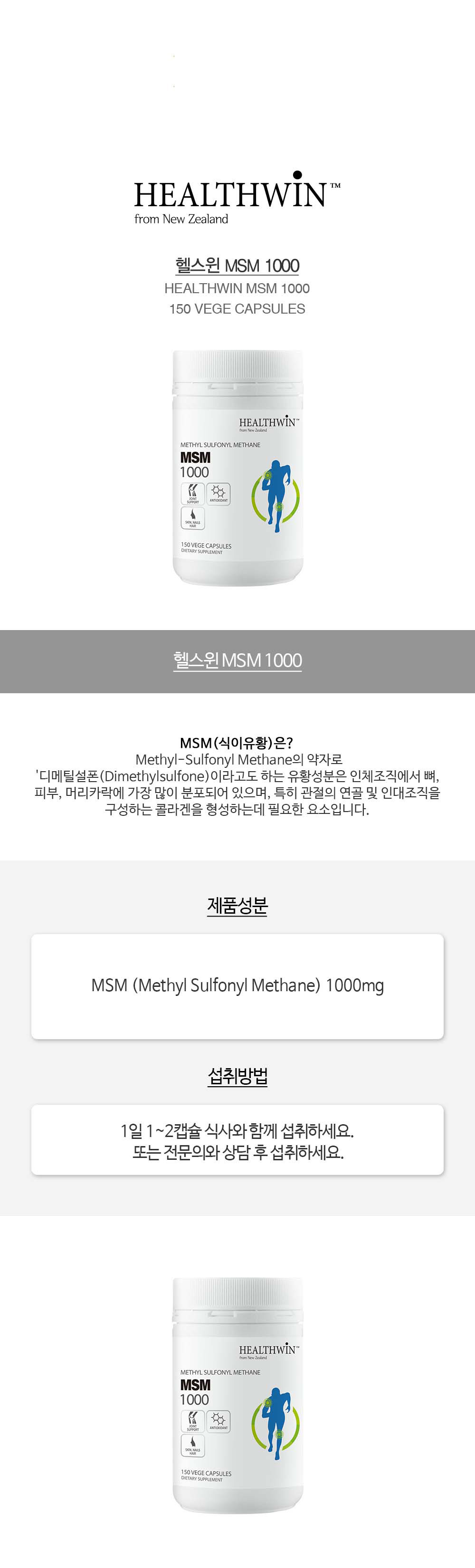 ´ºÁú·£µå ÇコÀ© MSM ½ÄÀÌÀ¯È² 1000mg 150 ĸ½¶